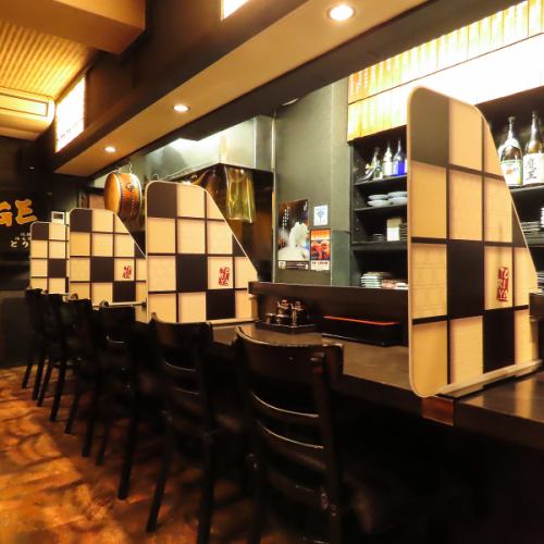 【臨場感あふれるカウンター席】広々としたカウンター有!デートなどに◎区切りがあるため、隣を気にせずご利用いただけます。